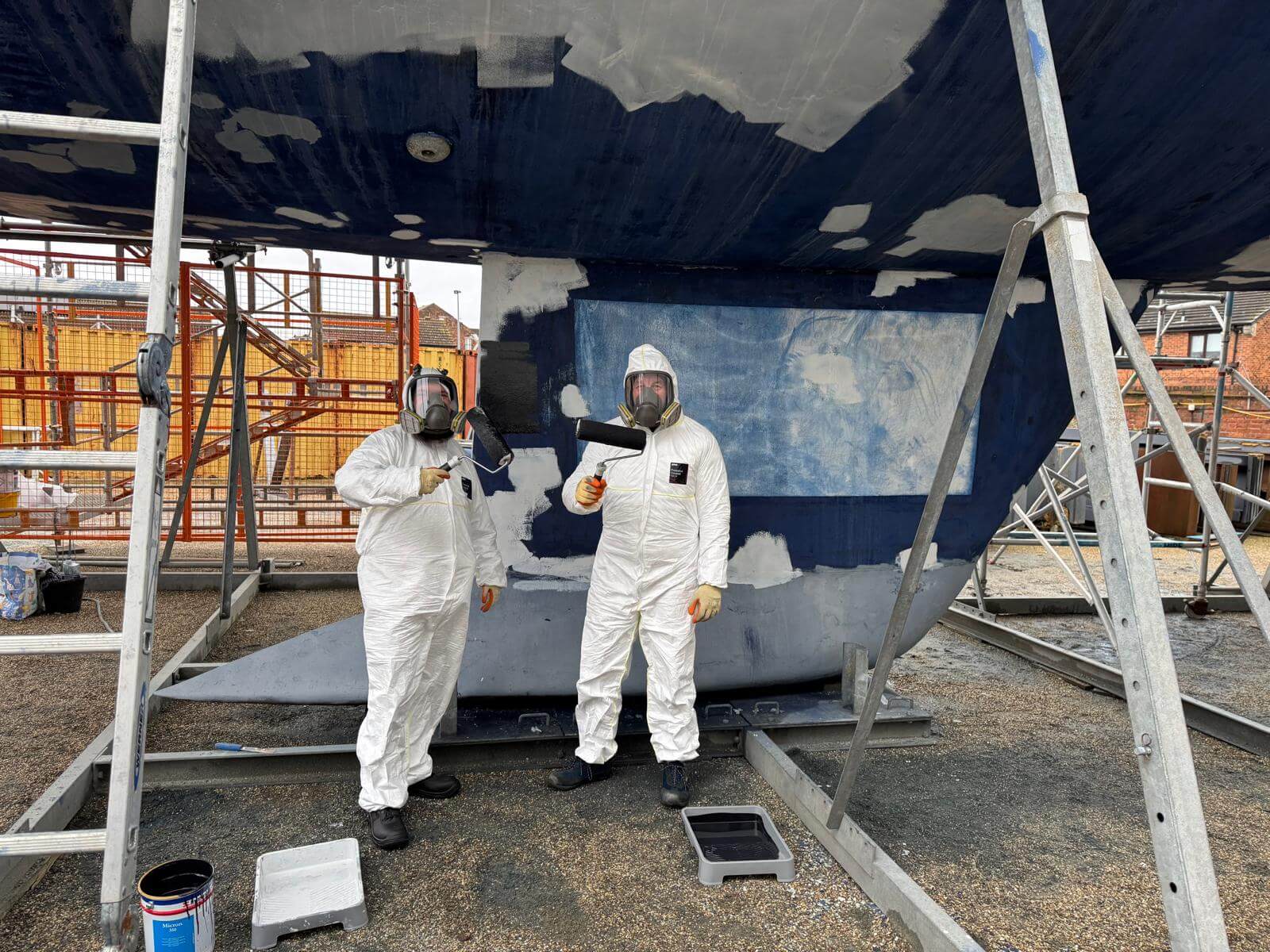 “While in dry dock, the yacht underwent checks of the rudder, keel, a full internal inspection, and steel and paint works. The hull was scraped clean and repainted with antifoul paint, kindly donated by Akzo Nobel and carefully applied by Joe and Gary of Connexin. The pair volunteered for the day as part of a scheme across the Connexin workplace and did a fantastic job!”
